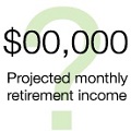 To estimate your retirement income, we use a process called annuitization and adjust for inflation to translate estimated portfolio values at retirement age into annual pre-tax estimated retirement incomes in today's dollars.